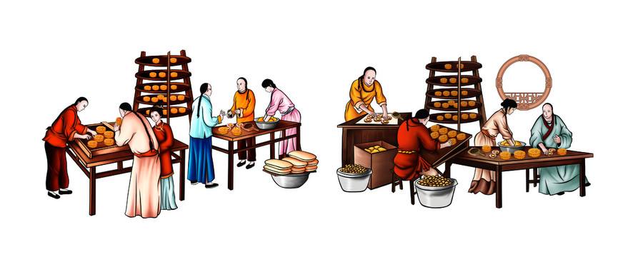 餅的最初含義是用麥粉做成的食品,水煮、汽蒸、火烤、煎烙、油炸等種類(lèi),可不單單指我們現(xiàn)在所能看到的餅類(lèi)食品哦。在漢代,面條也是餅類(lèi)的一種,因其要入湯中煮熟,所以稱之為“湯餅”。而所有蒸制的面食,不管有餡無(wú)餡,是葷是素,是甜是咸,都可以稱之為“蒸餅”。火烤之餅為燒餅。燒餅在古代又稱熬餅,分漢餅和胡餅兩類(lèi)。漢餅據(jù)傳源于漢高祖劉邦,胡餅據(jù)說(shuō)是匈奴人金日磾歸漢時(shí)傳播到中原的。煎餅是通過(guò)金屬工具、天然石子等媒介傳熱而將面食煎烙成熟。古人將抹上油脂的稱為“煎”,沒(méi)有油脂的稱為“烙”。油炸的面食出現(xiàn)較晚,唐以前的油炸面食多用動(dòng)物脂膏,唐以后出現(xiàn)了芝麻油和菜籽油等植物油,也就出現(xiàn)了越來(lái)越多的油炸類(lèi)面食。直至宋朝以后,餅的含義再次發(fā)生變化,制餅原料也得以擴(kuò)展。發(fā)展到現(xiàn)代,則成了平狀食品的專(zhuān)稱。