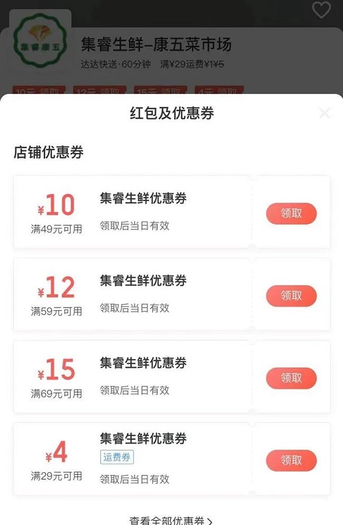 為了避免菜市場被數字化“掏空人氣”,采用線上優惠券只能在線下使用的設計,為菜市場保持并引入人流,幫助菜市場維持“活力”。